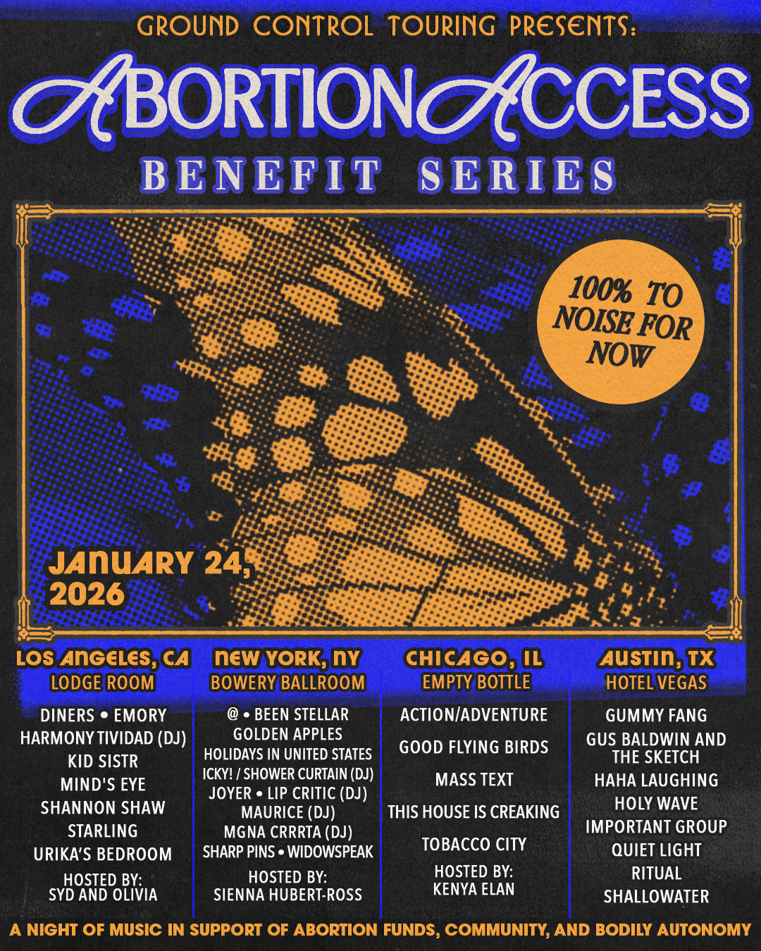 A portion of the proceeds benefit NOISE FOR NOW.